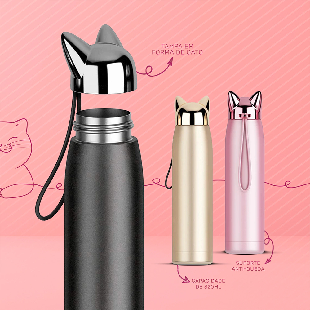 A Garrafa Térmica Cat 320ml é perfeita para quem ama praticidade com um toque de fofura e estilo!