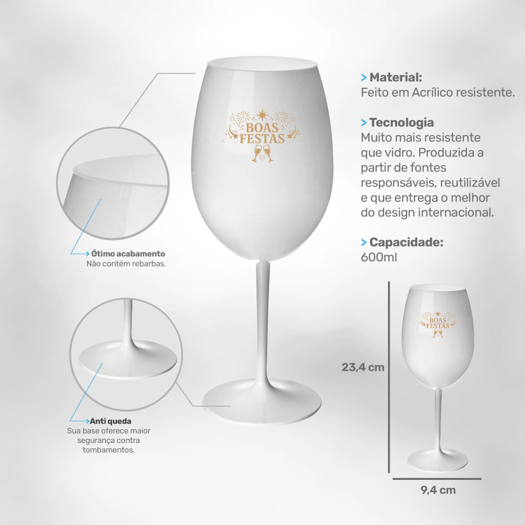 Capacidade de 600ml: ideal para apreciar vinhos e bebidas com conforto e estilo.